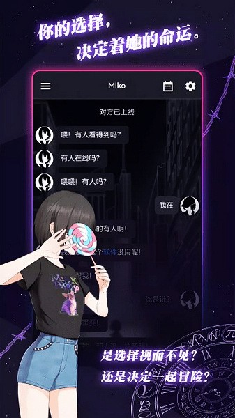 异次元通讯是一款非常好玩的休闲文字类手游,它画面非常精美,并且其中的题材非常新颖,还内置了十分内丰富的剧情故事。玩家们在游戏中扮演的角色是一个美少女miko,大家在游戏中需要通过通讯功能来与其他人进行对话和互动,大家需要来了解事件的来龙去脉,同时大家也需要睡眠时间以及活动时间,持续登场的各种神秘角色,更加跌宕起伏的文字剧情呈现,还有许多不同番外和结局等待你来发掘体验。