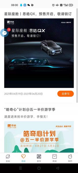 带您了解思皓乘用车与其产品科技,车友共同交流,不定期会组织线上线下组织活动,让购车以后的生活更加丰富多彩,分享你在思皓的每个精彩瞬间。