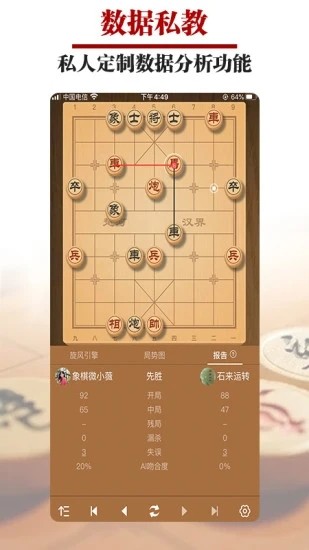 3、复盘拆解:应用专业象棋旋风引擎,步步为您分析,助您进步。