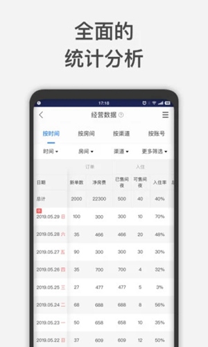统计功能,汇总房源在多个平台的出租情况,包括收入、支出、入住率等。