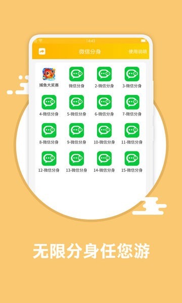 2、支持应用分身,多个账号同时在线;微信多开数量不限,互相独立不影响。