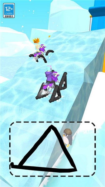 手绘辅助系统:玩家需根据关卡地形绘制特定形状的车轮,帮助角色适应沙漠、冰面等不同地形,形状复杂度随关卡提升。