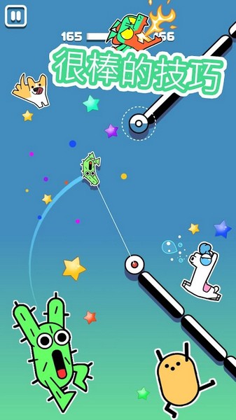1、简约清晰的画面,欢快灵动的音乐,飞钩火柴人游戏能够给玩家们带来一种极致的放松体验。