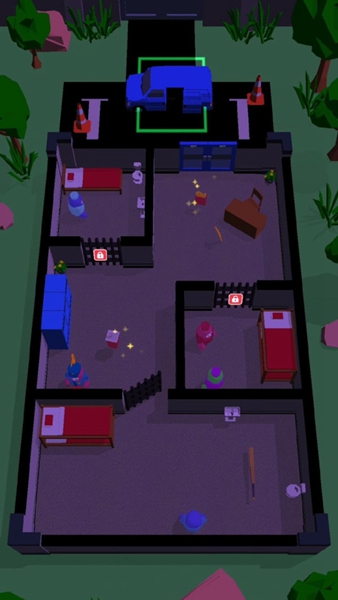 这是一款以解谜逃脱为主题的手机游戏,采用上帝视角的设计,使得玩家能够全面了解当前环境。每个关卡都设有一系列挑战,目标始终如一——逃出牢笼并进入屋外的汽车。游戏的场景并不是静态的,警卫的巡逻路线和灯光的开关变化增加了游戏的复杂度。玩家需要巧妙利用场景中的道具,如钥匙、绳索等,来制定逃跑计划。