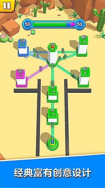 城堡征服者是一款非常好玩的策略塔防手游,游戏提供超百种关卡,每个关卡都有不同的挑战和机遇,保障了游戏的可玩性。游戏操作简单易上手,玩家只需要滑动自己的手指,从自己的塔到目标建筑画一条线即可。游戏还提供非常完善的新手教程,即使是新手玩家也可以很快掌握游戏的基本玩法和操作技巧,游戏保障了玩家的游戏体验感。