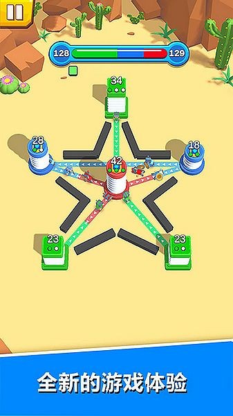 3、连接己方和己方的塔,可以进行支援。打败所有敌方的塔即可获得关卡胜利。