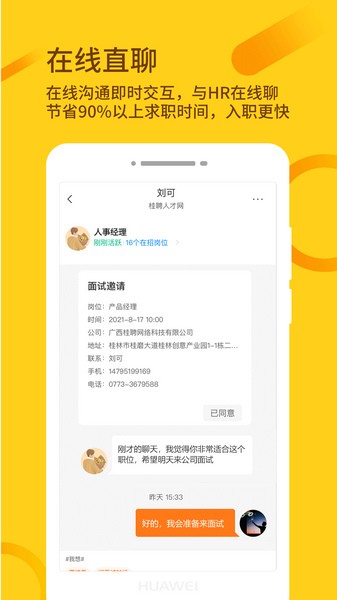 与hr即时在线沟通交流,快速敲定面试机会。