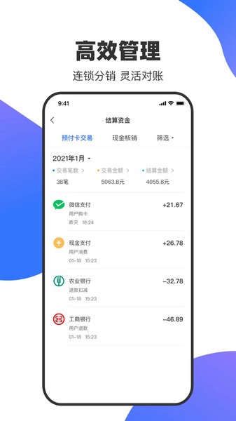 吾卡商户端app是一个非常好用且超级实用的便携式管理服务平台,在这里,不但可以针对不同的支付模式进行更好的在线了解,方便你了解不同的活动信息以此保证自己的支付更加周密与安全,而且吾卡商户端能够帮助你更好的了解不一样的服务信息,同时及时的在线知晓满足不同用户的各类消费需求,当然了,这款软件还可以通过预付式消费全流程管理、跨界引流、会员营销以及私域营销等功能,以此有效提升到店流量和会员锁客流量。