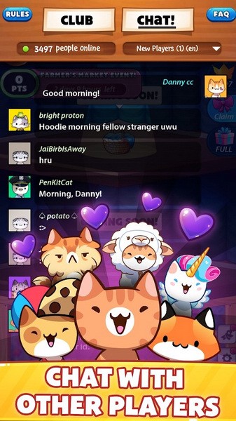 1.一边养猫一边收集爱!收集鱼干猫草,新的猫就会出现!