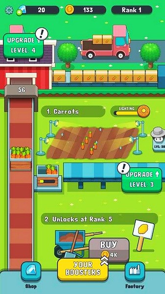 1、下载安装好打开果汁农场游戏,来到游戏中点击农场中的购买;