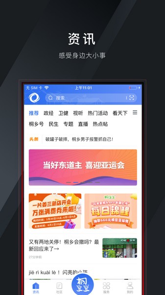 2、为大家带来了桐乡本地的各种政务服务,并且每天都有各种新闻资讯更新,还能搜索你关注的新闻。