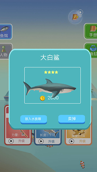 游戏里有各种各样的鱼类,从可爱的小丑鱼到凶猛的大白鲨,还有美味的三文鱼、蓝鳍金枪鱼,种类丰富得让人眼花缭乱。钓竿的操作也很讲究,卷线轮的齿轮设计让放线和收线的过程都充满细节感。特别是当鱼儿挣扎的时候,那种感觉特别真实,让我感觉自己真的在钓鱼。