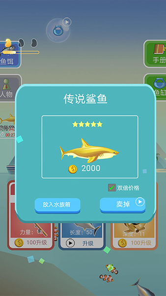 超大的海域,一起钓鱼吧! 你拥有一把超级鱼竿,能钓千米以外的未知的海域,你会钓上来什么? 也许是一条可爱的锦鲤,也许是一条美味的三文鱼! 夏威夷沙滩、热闹城市、亚马逊、北极雪境! 小丑鱼、大白鲨、美味三文鱼、蓝鳍金枪鱼! 等你来收集!