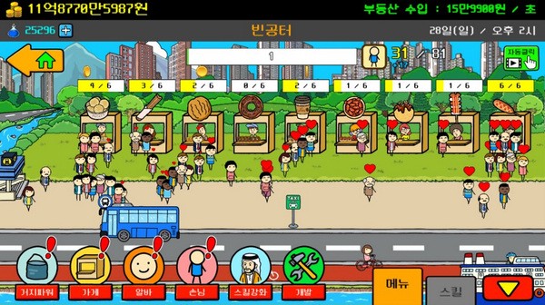[赚取金币]:您可以通过单击屏幕或通过建立像大亨游戏的商店将商品卖给客户来赚取金币。