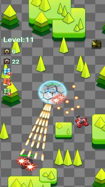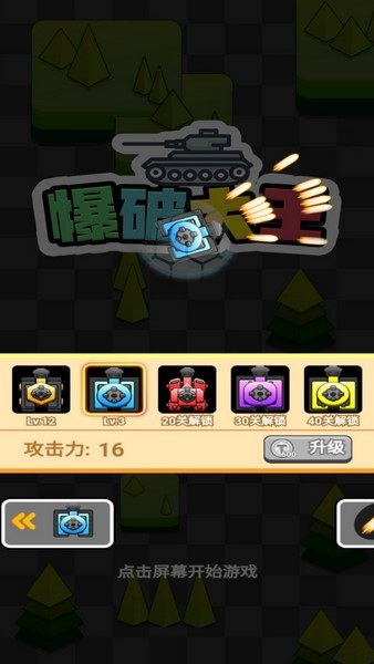 爆破大王是一款坦克射击类游戏,这里有很多坦克可以选择使用,每种坦克的攻击方式都是有所区别的,玩家可以随着有玩解锁更多新的坦克来体验。在关卡中我们可以看到敌军坦克的数量,而且采用的是俯视视角,更容易制定战术。利用关卡地形来以少打多,摧毁敌人的全部坦克来获得胜利。此外我们还可以升级坦克来提升战斗力。