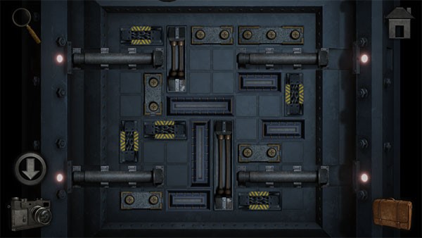 16、进入地下室,点击拐角走廊墙壁上的机械面板,根据上面的顺序打开盖子获得「锤子」。接着回到客厅,用锤子砸开玻璃柜拿到里面的「台球」,最后到游戏厅根据墙上的提示摆放台球。