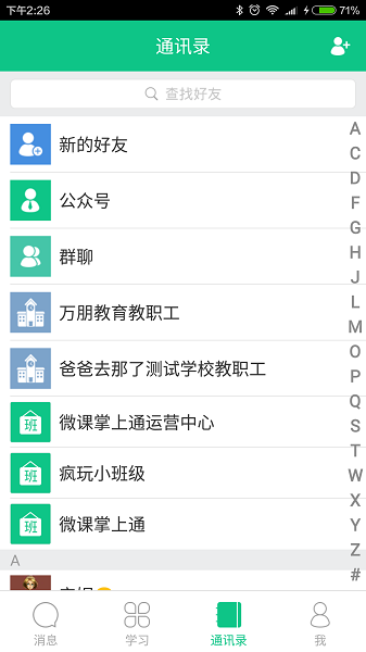 6、在上面,已经有任课老师、家长、学生通讯录