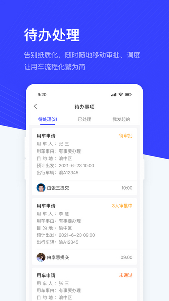-告别纸质化,跨入数字化办公流程,随时随地移动审批、调度,让用车流程化繁为简。