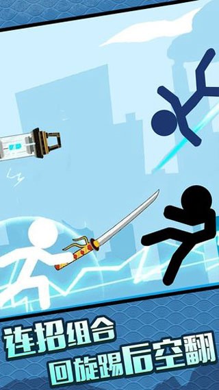 4、在游戏中玩家需要控制火柴人左右飞旋或二次飞旋可以将他们踢飞进而战胜他们;