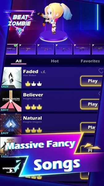 节奏僵尸破解版是一款射击题材的音乐节奏手游。游戏把音乐节奏玩法和僵尸射击玩法结合在一起,玩家不仅可以欣赏到各种动感的音乐,还能射击大量的僵尸,满足自己的游戏快感。游戏中酷似小丑女的潮流搭配,再加上大量热门的枪械,各种热门AK47、M416、AUG等数十款武器可自由选择,让整个游戏都保持着非常高的游戏可玩性。此版本为大家破解解锁全部武器和全部歌曲,无需付费即可选择和欣赏,快来下载体验吧!