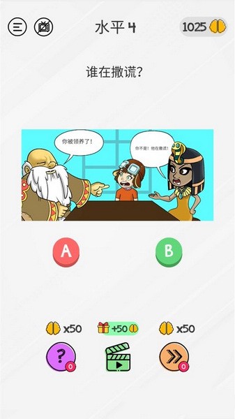 游戏里的题目种类很多,比如文字游戏、数字游戏、脑筋急转弯等等,而且画风还很搞笑,无厘头漫画风格让人觉得轻松愉快。操作也很简单,每次给出四个选项,点击正确答案就能继续。虽然题目看起来可能有点棘手,但其实仔细观察细节就能找到答案。