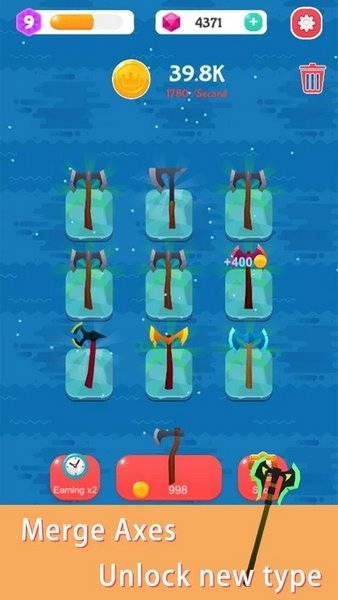 不断合并解锁更多闪亮又锋利的新斧子
