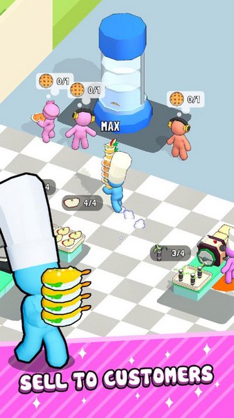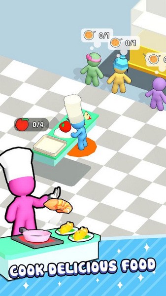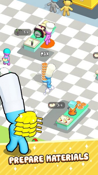 解锁 20 多种具有不同功能的员工,例如烹饪、上架、清洁,以提高工作效率,从而快速发展您的商店。 有了它,不要忘记解锁和升级商店中的设备以使您的餐厅自动化。