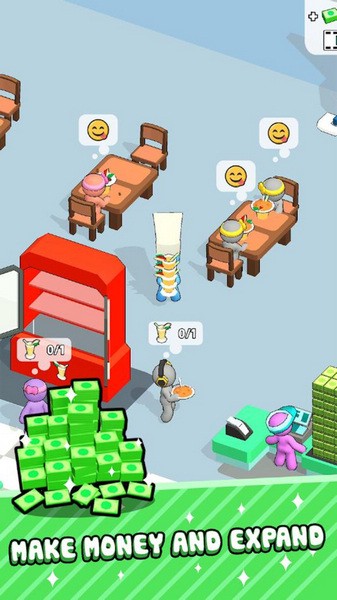 雇佣更多工人服务,获取食材并烹饪,每种口味都有独特魅力。游戏采用清新的卡通画面,从建造设备到升级设备,一切都是为了建立最大的餐厅。在多种业务领域中建立和交易商店,感受餐饮业的乐趣。