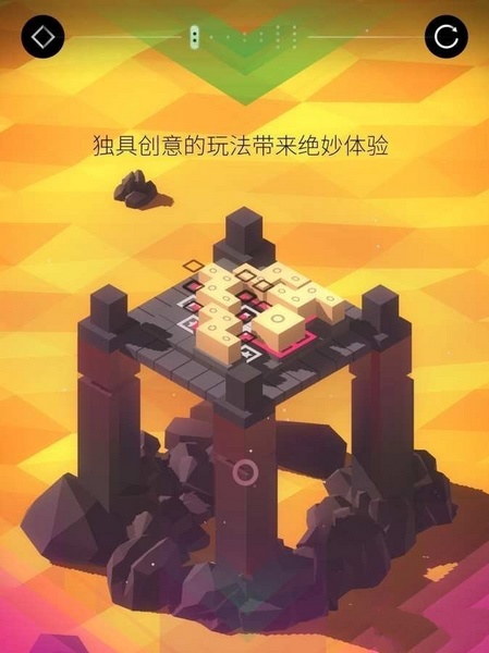 它有全新的玩法、有极富设计感的画面、有柔美的音乐,却没有时间限制,也没有体力系统,让你能够完全沉浸在美与挑战的方块世界,是你放松解压的完美选择。