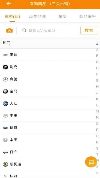5、打开在线采购版块,查看详细的车型和品牌分类信息,选择门店需要的配件快速采购
