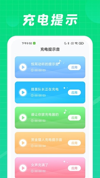 提供多款趣味充电提示音,让用户可以个性化设置充电提示音,使充电不再枯燥无味;