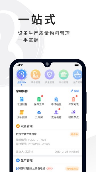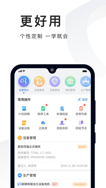 必择app是一款适用于各行各业的手机商务办公软件。这款软件可以帮助用户便捷地管理各类设备,设置好设备的检查和维护周期,保障设备的安全使用。同时,用户还可以通过软件来监管生产过程中的各个环节,查看所有设备的使用状态,协调各个车间的工作。此外,用户还可以在软件上发起各种申请,指派任务等。