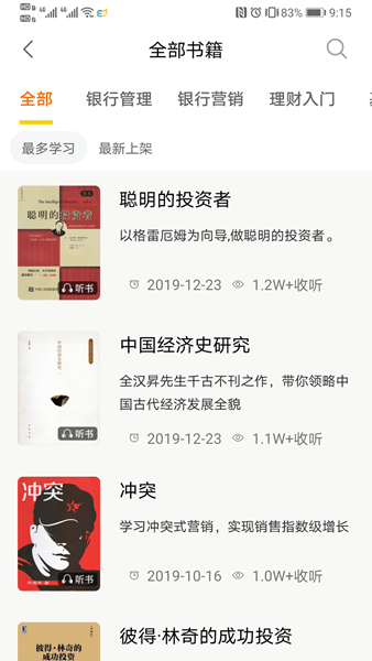 梯子约读是一款专为金融行业用户打造的知识学习软件。作为金融从业者,这款App确实挺实用的。它界面简洁,内容丰富,涵盖了银行管理、理财入门、资产配置等专业领域,还有音频、视频等多种学习形式,45分钟就能听完一本书,节省时间又高效。