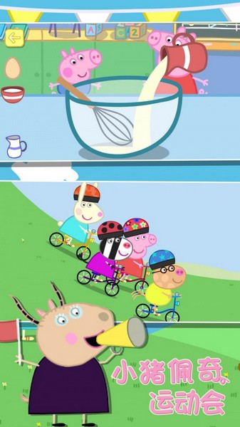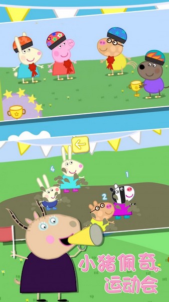 小猪佩奇运动会安卓版是一款专为儿童设计的趣味休闲小游戏。这款游戏玩家将和小猪佩奇一起参加运动会,一起在各个运动项目中大放异彩,体验丰富多彩的卡通运动会。通过这款游戏可以教会小朋友一些简单运动小知识和小技巧,也可以让小朋友去了解一些运动项目的比赛规则,还可以教导孩子辨别数字。