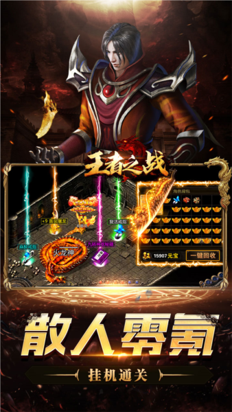 王者之战BT版是一款非常鸡蛋的传奇风打宝冒险类手游,在这里玩家将体验到一秒五刀的快感,并且全程不需要任何的门槛,有着许多酷炫的高阶装备等各位进行解锁,玩法非常的自由。同时该游戏内没有繁琐的限制,材料、货币都能够在交易行中进行交易,让经济更加的贴近真实市场,让每一位小伙伴都能够成为真正的传奇王者,感兴趣的小伙伴快来下载吧。