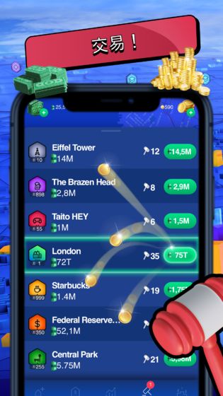 投资你的资本、观察对手动态、和朋友们交易,使用增强现实元素买卖地产,给他们升级来赚取更多利润,使你达到排行榜榜首。