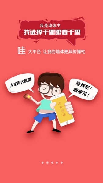 千里眼看千里是一款广告投放app,在这里有超多的媒体商和施工单位,用户可以发布自己的广告需求,然后选择满意的设计和施工单位来完成墙体广告宣传。如果对广告施工的过程和最终的效果不放心,但是又没有时间一直进行监督的话,还可以发布监督任务,然后让其他用户帮忙监督,可以通过监督者上传的照片来知晓具体的状况。