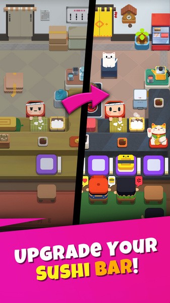 2、拥有超过70种可爱的寿司角色,满足不同客人需求的同时,帮你赚取更多的金币;