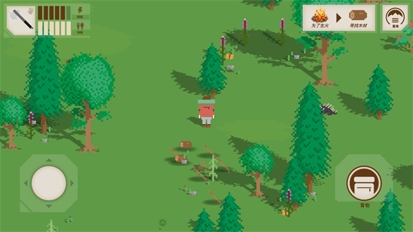 3、点击树木会自动砍树,砍完后点击掉落到地上的材料捡起。同理,点击瓜果就可自动走过去采摘。