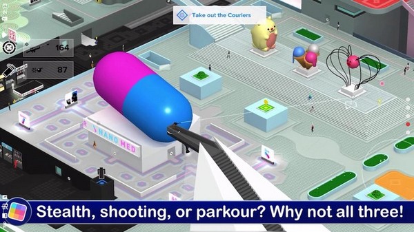 3、技巧射击,子弹动力学,潜行隐身和人群模拟都融合在这色彩纷斓的狂热之中。