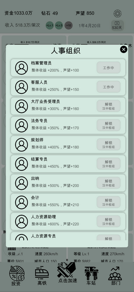 丰富的人员和部门可以逐渐解锁,解锁的部门和人员越多你的公司就会越发达。