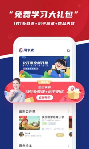 阿卡索英语是一款集英语口语、听力、发音为一体的在线学习软件。这款软件的适用人群是少儿,帮助您的孩子赢在起跑线上。在软件中,为不同水平的孩子开设了不同课程,并通过相关测试可以帮助您制定独一无二的学习计划,让孩子在轻松快乐中学习与成长。今天下载就可以获得额外的礼物,价值188元外教一对一体验课。软件连续两年获得了中国家长及学生最喜爱的在线教育软件奖,是一款值得信赖的软件。欢迎下载体验,相信这款软件能够帮助您的孩子事半功倍学习英语!