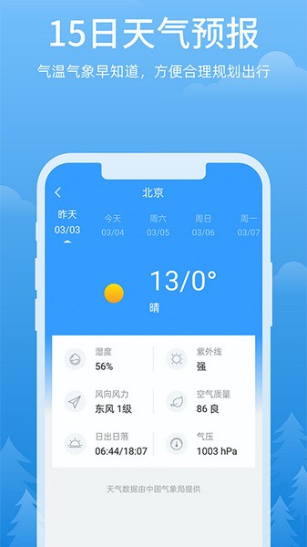 能够精准定位及时推送公里级天气预报,实时监测天气现象与气温情况;