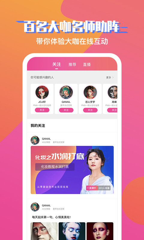 美课堂APP是一款专业的美业技能课程分享平台,让初入美业的用户提升自我不断进步的好伙伴,美业人通过美课堂APP、网站收看各种各样的美业节目。美业人可创建一个专属于自己的直播间,开设直播或上传录播作品,也可以选择自己想要学习的内容,合理利用上下班路上、临睡前等碎片时间,通过在线学习提升自己的技能。