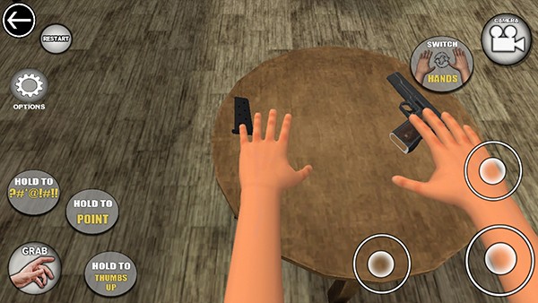 2、玩法规则是拿起桌子上各种物品,例如手枪、笔记本电脑、剪刀等等;