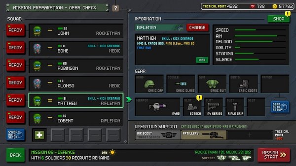 3、为每个类别使用各种武器,武器修改和设备,升级你的基础设施并提高士兵的能力。