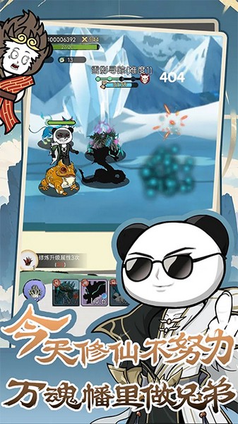 斗兽至高天是一款放置养成类卡牌策略游戏。在这款游戏中玩家可以获得各种各样的卡牌,这些卡牌以经典的熊猫表情包为原型设计,每张卡牌都有属性、类型等划分,需要玩家去收集和组合卡牌阵容来尝试挑战关卡。每次成功击败敌人都可以收集兽丹用于人物的修炼,消耗兽丹来提升人物属性。游戏采用放置挂机玩法,玩家在上阵角色后可以自动战斗去收集资源。
