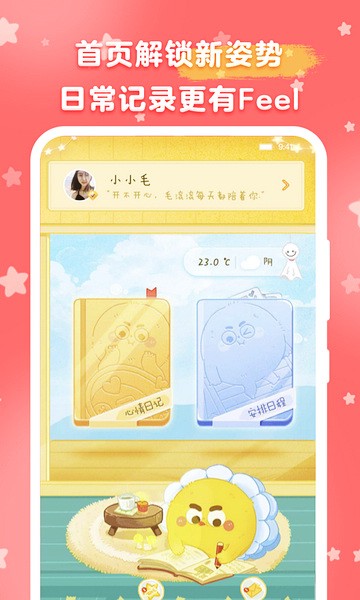 毛滚滚日常app是一款令人怦然心动的日记应用。它不仅可爱至极,还具备了记录心情和打卡行程的强大功能。不管你是想写日记、记事、制作手账、记录便签,抑或书写笔记,本软件都能应你所需。最令人欣喜的是,你可以设置一个密码锁,确保只有你知晓其中的秘密,保护了你的私密记录。