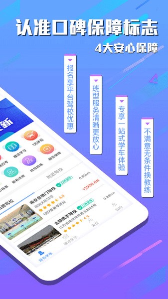 2、驾校有保障:担心遭遇黑驾校?明星驾校合作资质认证。