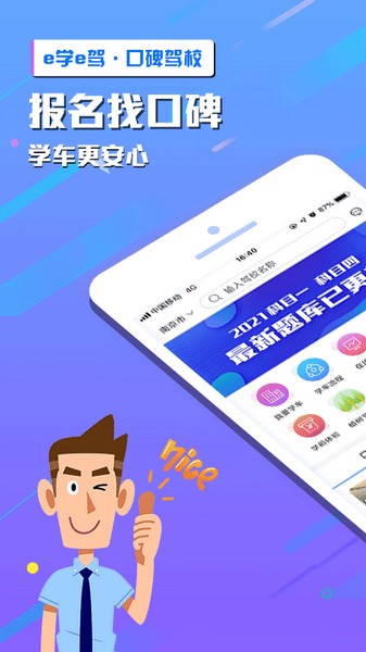 e学e驾app是一款很实用的驾照考试学习软件,里面有很多驾考经验和海量题库,还有各种驾校入驻,提供线上线下资源,用户可以轻松找到适合自己的驾校。软件功能很全面,包括驾校展示、在线报名、学车模拟等,亮点也很突出,比如专属教练服务、在线约课、学车视频和模拟试题等,特别是有官方合作的最新权威题库,这对备考的人来说特别有用。